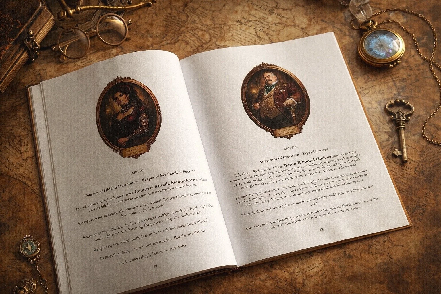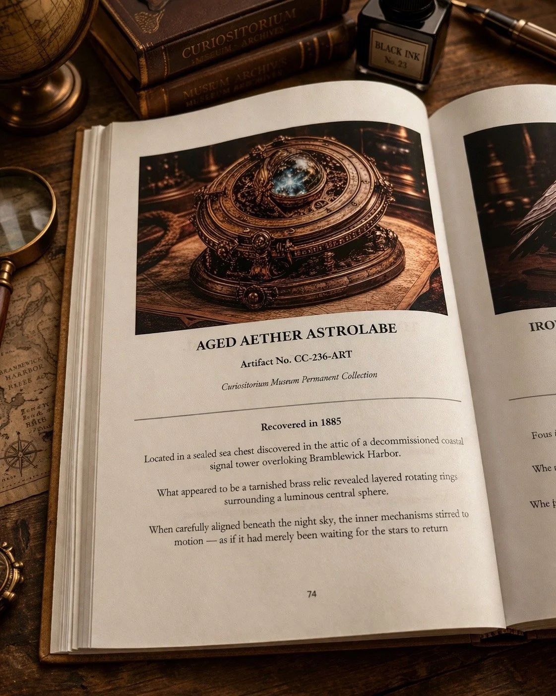 As you wander through the Curiositorium’s grand halls, you will encounter remarkable machines, peculiar artifacts, and curious oddities, each with its own tale to tell. From time-twisting devices and whispering instruments to inventions that solve problems you didn’t know you had, every exhibit reveals a piece of a much larger mystery.