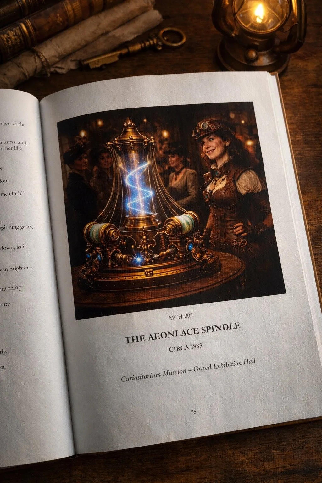 When the professor vanishes into its swirling vortex, the Gearwyn sisters must journey through clockwork cities to find him. Along the way, they encounter curious contraptions, hidden riddles, and the whispering Fogweavers, shadowy figures cloaked in mystery who may hold the key to unravelling time itself.